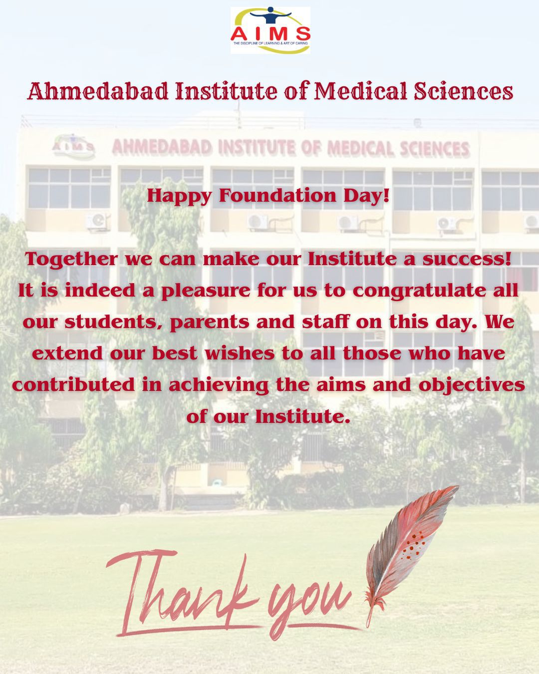 It gives me immense pleasure to welcome each one of you to Ahmedabad Institute of Medical Sciences( AIMS) . I feel fortunate to represent the college. At this Campus we nurture those minds in such way that these intellectuals are mending to be tactful professionals with human Heart.